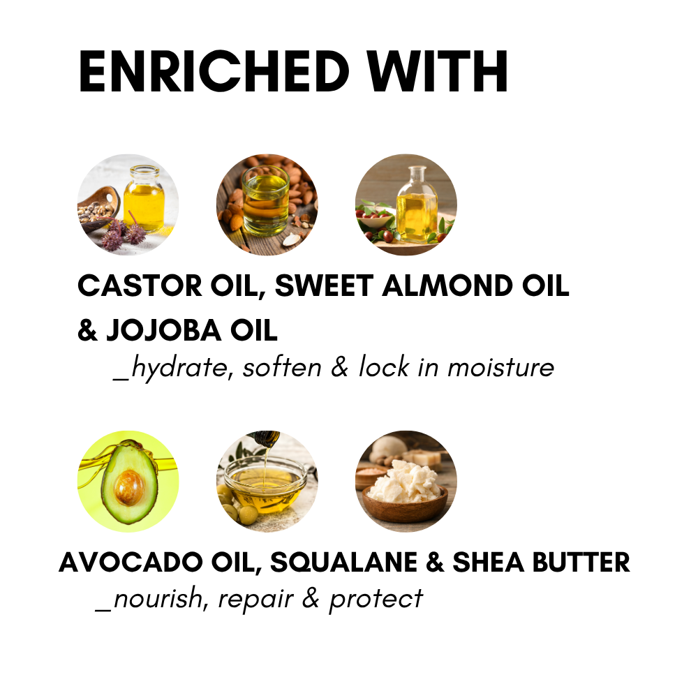 Enriched with lip-nourishing ingredients: Jojoba Oil, Sweet Almond Oil, Squalane, and Shea Butter